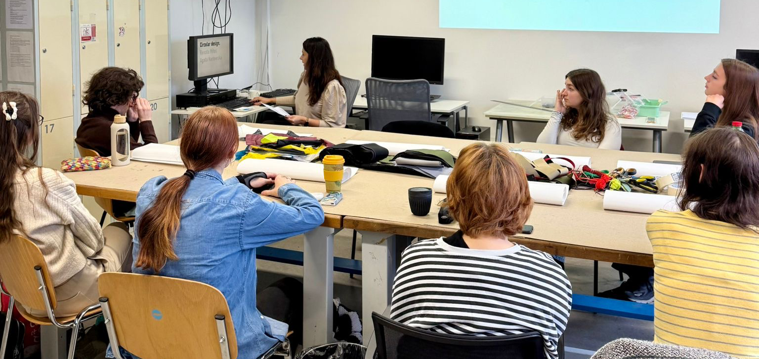 Ve čtvrtek 13. listopadu 2025 proběhl na ateliéru Design obuvi FMK UTB čtyřhodinový intenzivní workshop zaměřený na principy cirkulárního designu. Do Zlína kvůli tomuto dni přijely kantorky z Akademia Sztuk Pięknych im. Eugeniusza Gepperta we Wrocławiu, aby studentům představily současné kreativní i ekologické přístupy v práci s materiálem.