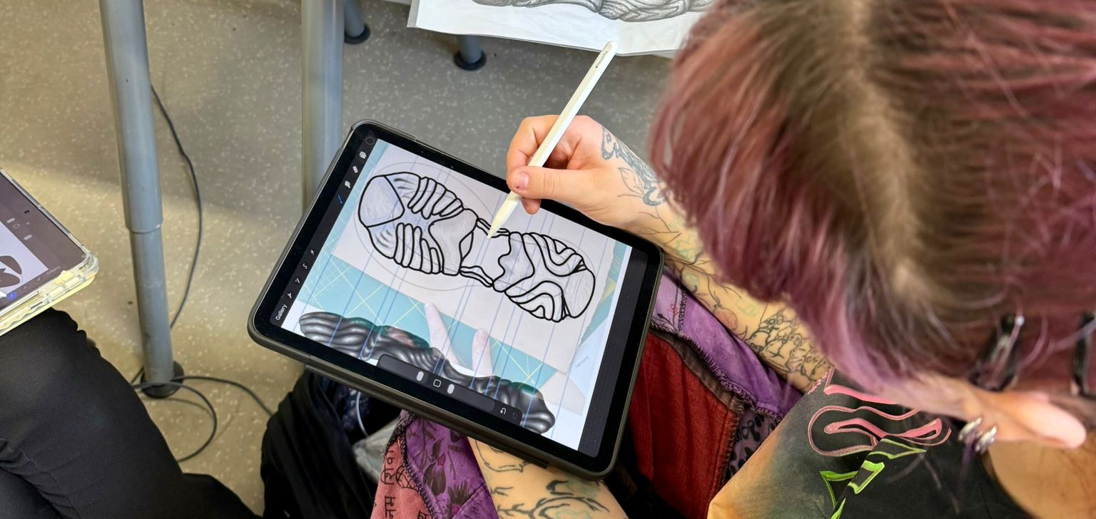 28. listopadu 2025Na ateliéru Design obuvi proběhla v říjnu a listopadu série tří intenzivních workshopů pod vedením ilustrátora a tatéra Michala Hladíka, který studenty seznámil s profesionální prací v programu Procreate. Setkání se uskutečnila 9. října, 30. října a 20. listopadu, vždy v délce tří hodin.